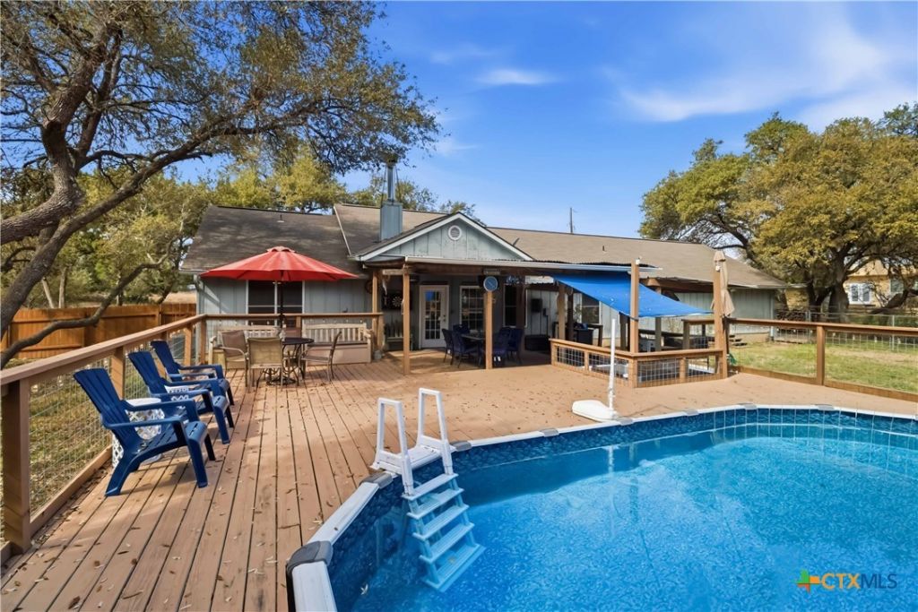 Discover Hill Country living at its best. This updated and charming ranch style home sits on two lots with a 3 car garage perfect for storing your boat or other outdoor toys. (There is an additional lot included with the purchase already fenced in!) Outside, this property is surrounded by greenery and mature trees offering privacy and space. Inside, this home has upgrades and renovations throughout. The layout is comfortable, functional and inviting. Step outside to an amazing oasis. This outdoor area has it all- multiple seating spaces and a huge covered patio perfect for grilling or entertaining. Enjoy the fully decked above ground pool and hot tub in the privacy of the spacious backyard. Don't miss the workshop in the garage (heated and cooled). Perfect for a man cave or craft room! Located in a sought-after community, residents enjoy access to a private boat ramp, community pool, sports courts and playground- making lake days and outdoor recreation effortless. This property has it all- location, lifestyle, and Hill Country charm just minutes from the water.