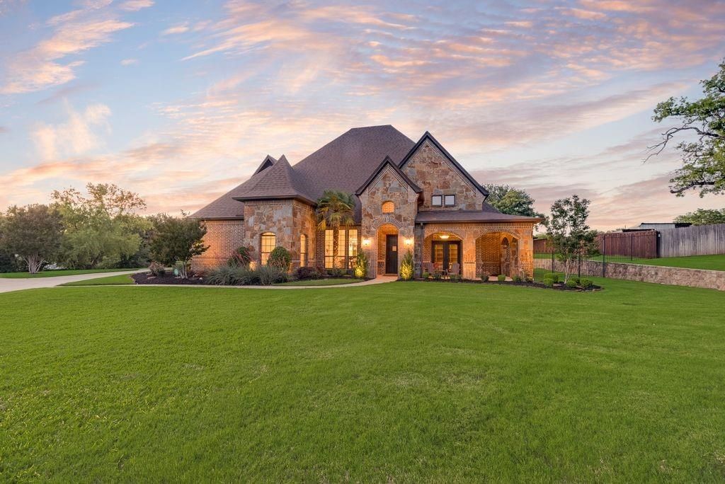 Nestled on just over an acre, this stunning estate offers the perfect blend of luxury, comfort, and privacy. Showcasing beautiful brick and stone curb appeal, a charming wrap-around front porch, and a side-entry 3-car garage, the home makes a lasting first impression. Inside, you’ll find a thoughtfully designed layout featuring 4 bedrooms on the main level, a formal dining room ideal for entertaining, and a dedicated executive study with built-ins. The spacious family room is anchored by a striking stone fireplace and flows seamlessly into the chef’s kitchen, complete with a large seated island, quartz countertops, double ovens, 6 burner gas cooktop, and refinished cabinetry—perfect for everyday living and hosting alike. The primary suite is a true retreat, offering a cozy sitting area and a relaxing ensuite with dual vanities, jetted tub, walk-in shower, and a generous walk-in closet. Upstairs, enjoy endless entertainment in the game room and media room with tiered floor. Freshly painted interiors and new waterproof floors add a bright, updated feel throughout. The Control4 Home Automation system integrates your devices and the alarm system provides peace of mind. Step outside to your private backyard paradise, where a covered patio with fireplace, outdoor kitchen with gas grill and bar seating, and a sparkling heated pool are surrounded by lush green space and mature shade trees—ideal for relaxing or gathering with friends and family. Perfectly positioned near Westlake’s prestigious financial district, the exclusive Vaquero Club, and just minutes from Southlake Town Square, this exceptional property offers luxury living in a prime location. Bonus: horses and livestock are permitted!