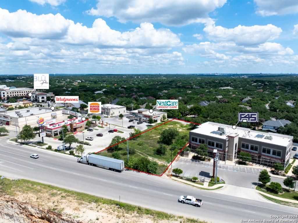 0.91-acre commercial lot, zoned C-2, is ideally located on the 1604 Frontage Road, offering excellent visibility and accessibility. Positioned adjacent to a variety of national brands including Walgreens, Burger King, F45, Starbucks, and offering excellent visibility and accessibility. Positioned adjacent to a variety of national brands including Walgreens, Burger King, F45, Starbucks, and Broadway Bank, this location benefits from significant traffic and high consumer activity. The lots strategic placement makes it an ideal site for a quick-Broadway Bank, this location benefits from significant traffic and high consumer activity. The lots strategic placement makes it an ideal site for a quick-service restaurant (QSR) or other retail ventures looking to capitalize on the bustling commercial environment.